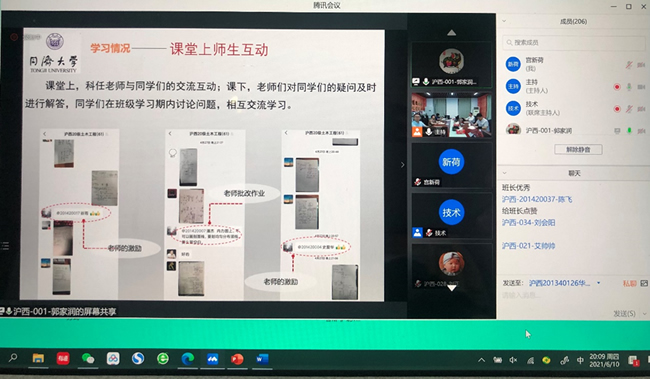 图4. 线上教学中的师生互动(沪西2020级土木工程)