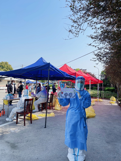2019级护理学专业(嘉定)的顾允同学就职于安亭医院。在本次疫情期间,她积极参与全市核酸大检测任务,奋战在安亭万立城、园区路301弄、星塔村、和静路288号等社区。