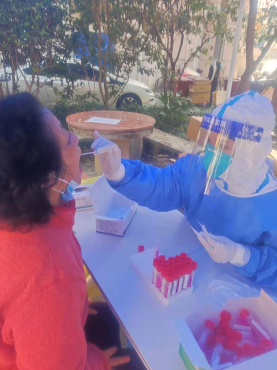 2022级护理学专业(1班)(黄浦)的许晨同学在社区医院工作。疫情以来,她一直参加着各种抗疫工作:参加过小区大筛、上门采样、隔离酒店工作等等,已经超过一个多月没有回家了。她希望疫情快点结束,所有人都能过上正常的生活!