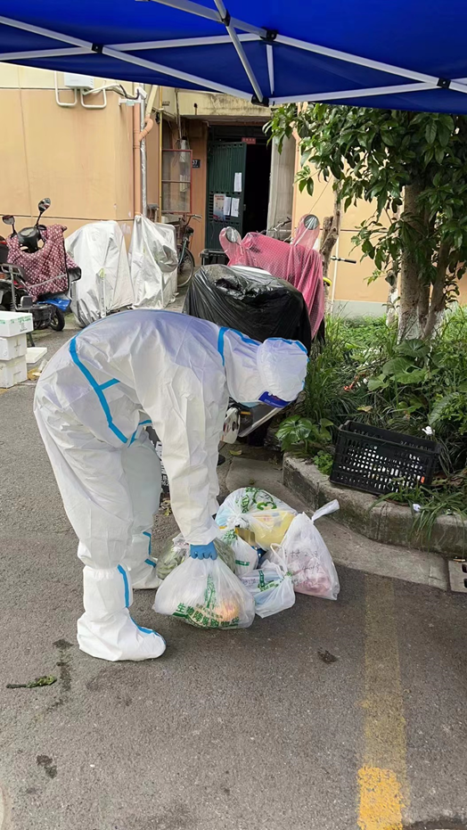 几乎每天,小区居民都在不停地团购:白菜,胡萝卜,黄瓜,猪肉……等。她和其他志愿者们一起,用自己的肩膀,扛起了沉甸甸的责任,一箱一箱,一袋一袋的给每个楼号居民分发、搬运他们的物品。从来没感觉到是那么得沉重;午时的防护服里面,汗水在浸透,楼梯上,腿在颤抖,但她无畏、无悔。她说,上海这场疫情之战,需要我们大家,去帮帮忙,尽一份责任。我很开心,欣慰,自豪,我坚信,这是鲜艳红旗下面,那份不变的信仰。吾辈青年,必将抗疫到底。