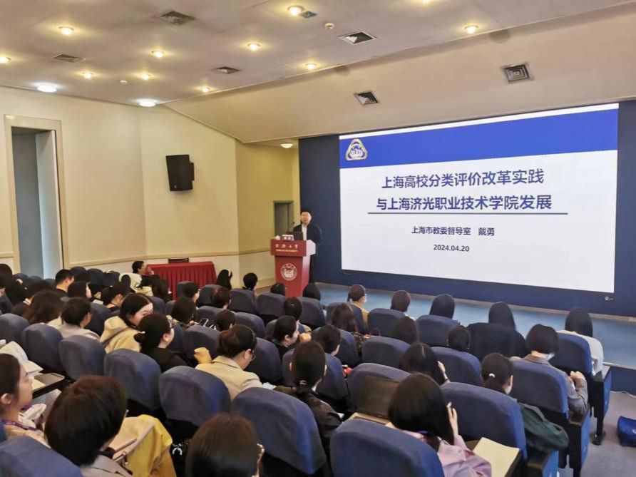 4月20日上午,上海市教委督导室副主任戴勇应邀为培训班作专题辅导报告。戴勇以《上海高校分类评价改革实践与上海济光职业技术公司发展》为题,结合自身丰富的实践工作经验,从上海高校分类评价改革实践与上海济光职业技术公司分类评价表现两个方面出发,进行了详细生动的讲解。