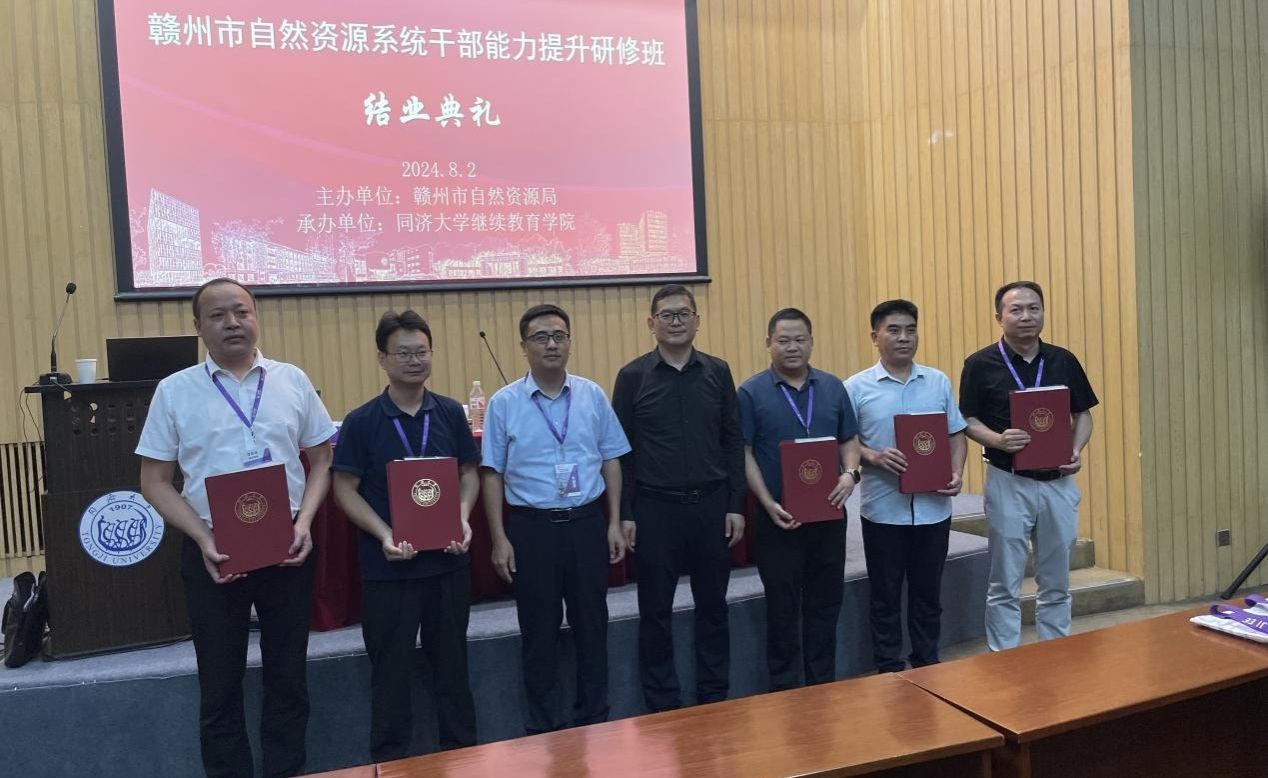 典礼上,还举行了隆重的授班旗仪式。朱挺旻副局长和金福安经理共同为学员代表授予班旗,标志着赣州市自然资源系统干部们的同济“充电”之旅正式开启。