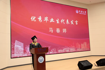 优秀毕业生代表马春婷,作为2022级交通运输专业的毕业生及铁路员工,分享了将函授专升本所学知识应用于铁路工作实践、提出改进措施提升工作效率的经历。她表示将铭记铁路人使命和同济校训,追求卓越,永不止步,并祝愿同学们保持对学习的热情、对未知的好奇心以及对生活的热爱,用所学去创造更加美好的明天。